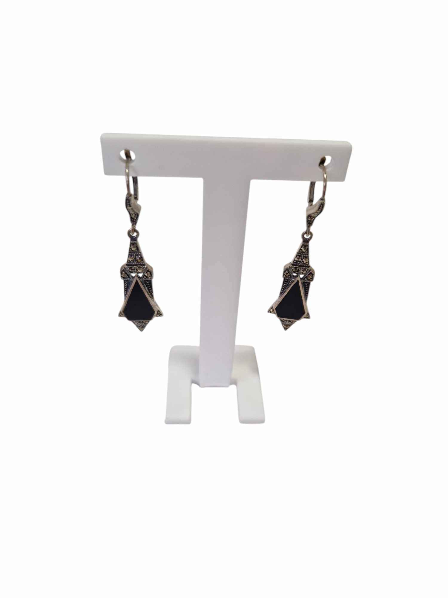 Magnifique boucles d’oreilles en argent, onyx et mascassites de la collection La Metrop Compagnie.