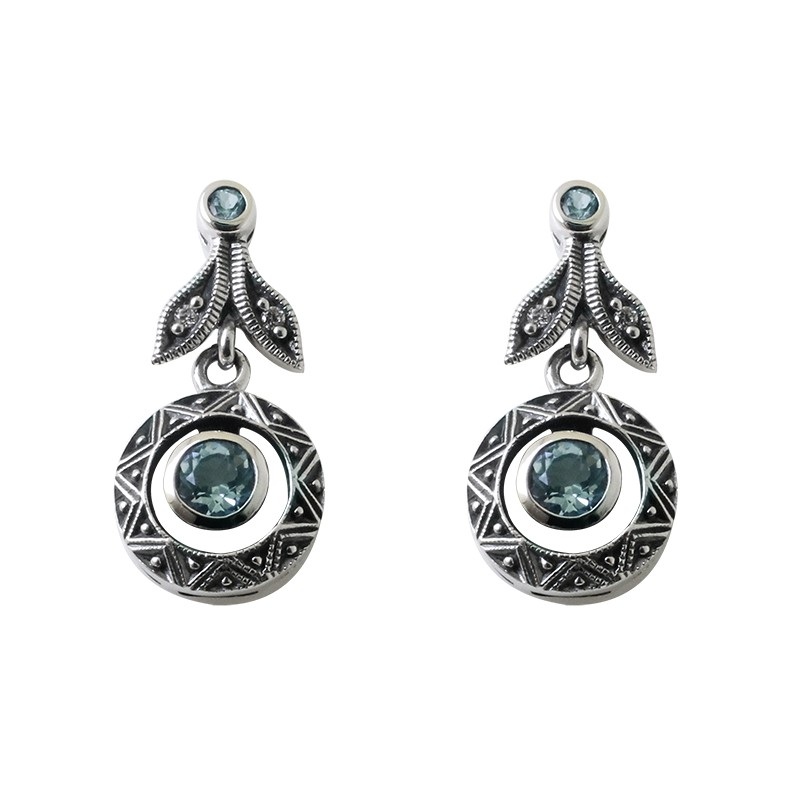 Magnifique boucles d’oreilles en argent, topaze bleu et oxydes de zyrconium de la collection La Metrop Compagnie.