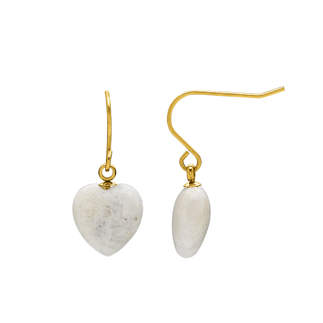 Boucle d’oreilles en acier doré 316L avec des petits cœurs en pierre de lune.