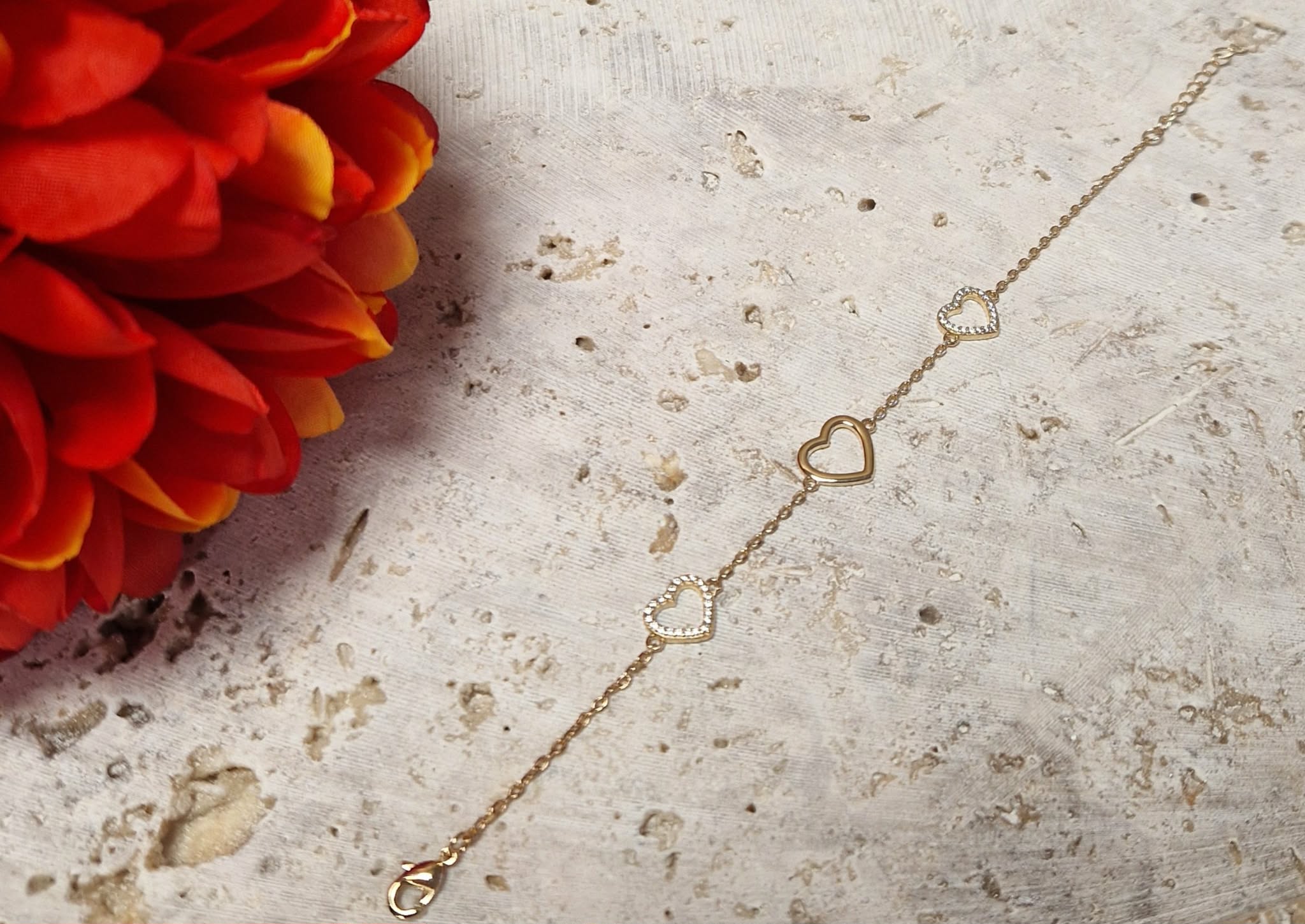 Bracelet cœurs plaqué or et oxydes de zirconiums