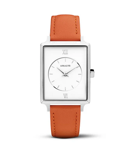 Avec son boitier carré et son bracelet orangé, cette montre apporte originalité et élégance à votre poignet.