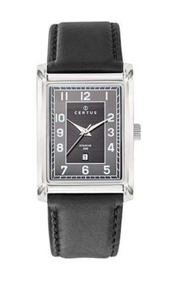 Montre rectangulaire pour homme avec bracelet cuir noir de la marque française Certus