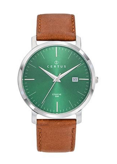 Montre pour homme avec date et bracelet cuir marron de la marque française Certus