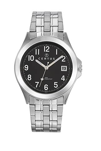 Montre pour homme en acier avec cadran noir et date de la marque française Certus.