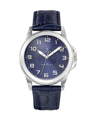 Montre pour homme avec indication de la date et bracelet cuir bleu de la marque française Certus